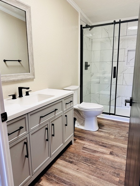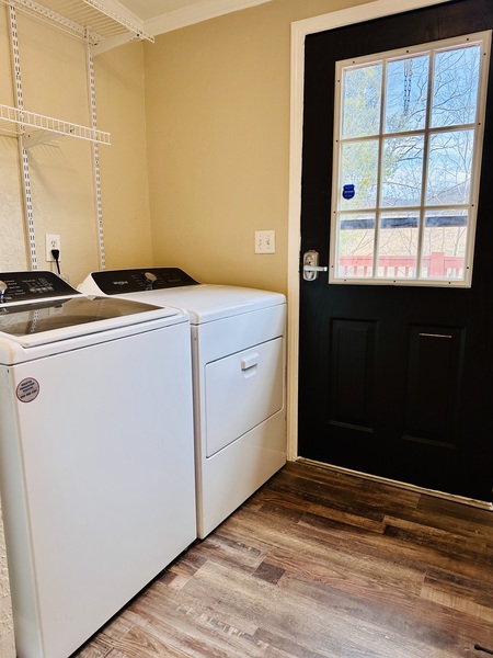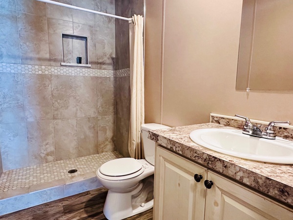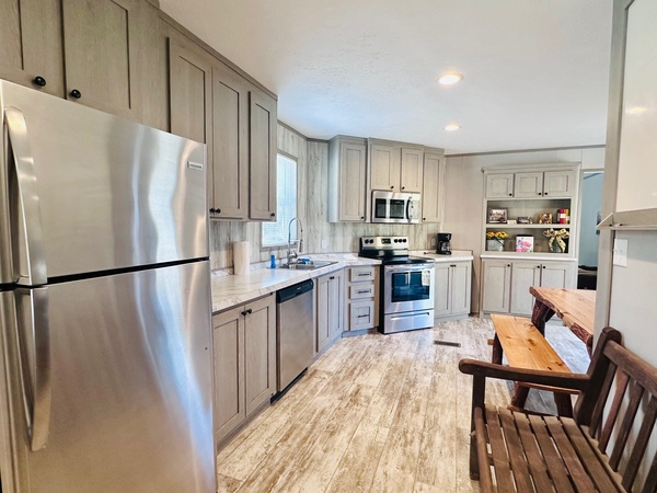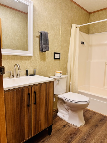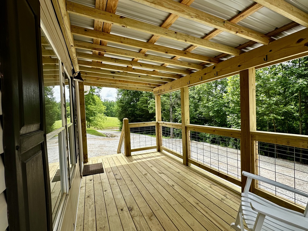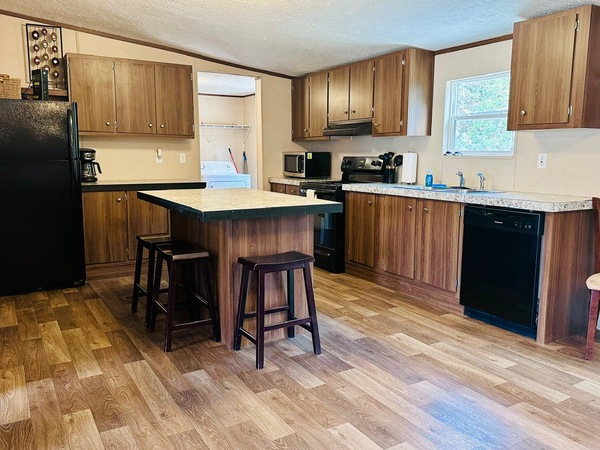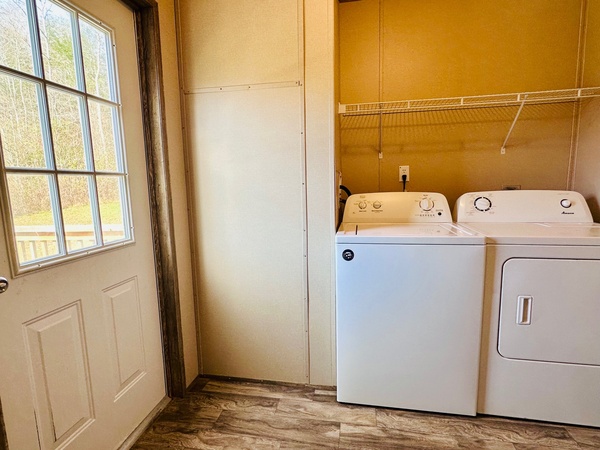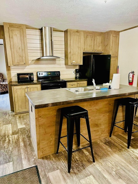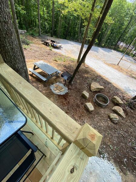 This home has 3 bedrooms and 2 bathrooms, a full modern kitchen, open floor plan, washer/dryer, dishwasher, stove/oven, full size refrigerator, 55 inch TV with Roku capability, charcoal grill, picnic table and fire ring. Unit sleeps 8 with (1) king size bed, 1 queen size bed , (1) Trundle twin size and (2) twin beds. All linens and cooking utensils are provided. Cabin also has a newly built covered front porch. This cabin is also pet friendly. There is a $20 plus tax nonrefundable pet fee per pet per night. Must be crated if left alone on the property. Free Wi-Fi available.