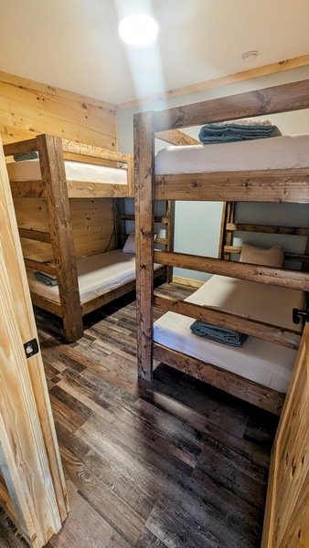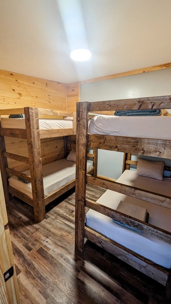These cozy one room cabin sleeps 6 people with 2 full beds and 2 twin beds. Cabin has heat/air, linens are provided and there is no indoor plumbing. These cabins are adjacent to our private entrance bath house. Free Wi-Fi available. Maximum occupancy per site is limited to 6 people. Each site is limited to one vehicle and one trailer. Additional parking is available in our overflow lot by permit only at a rate of $10 per day.
