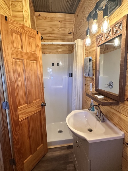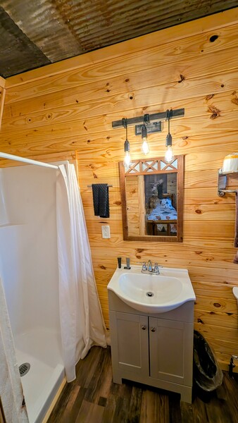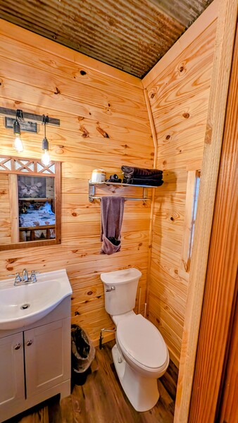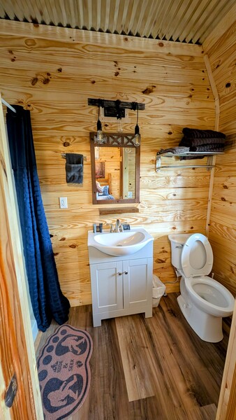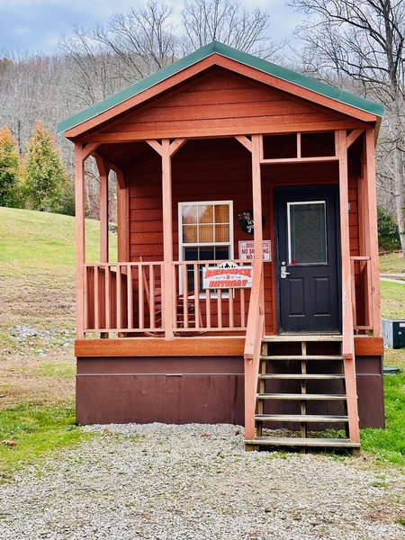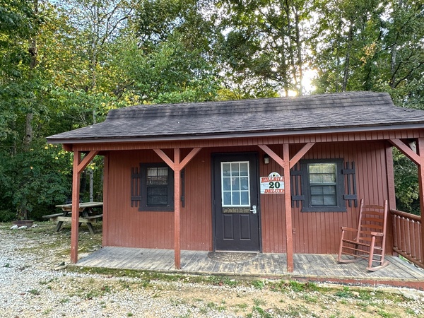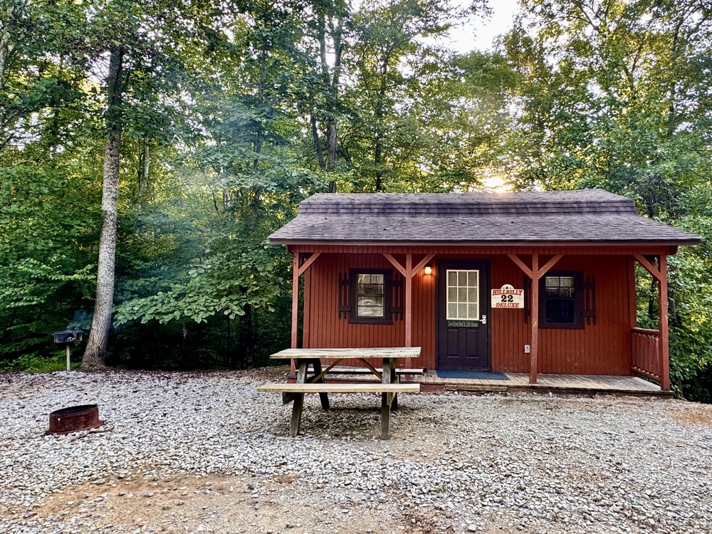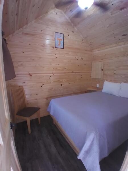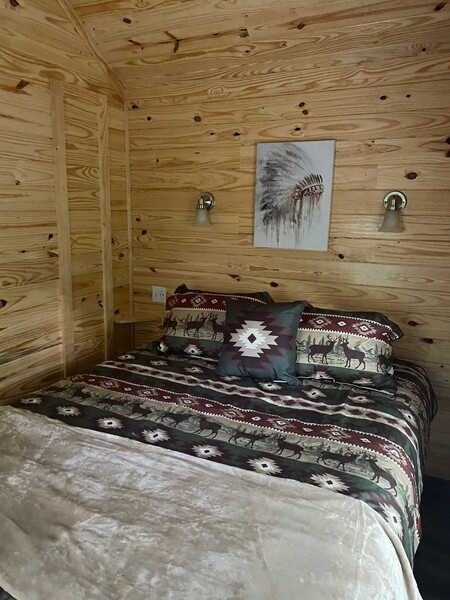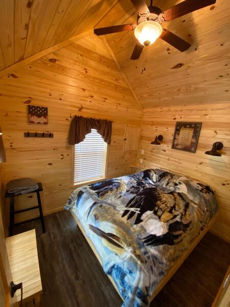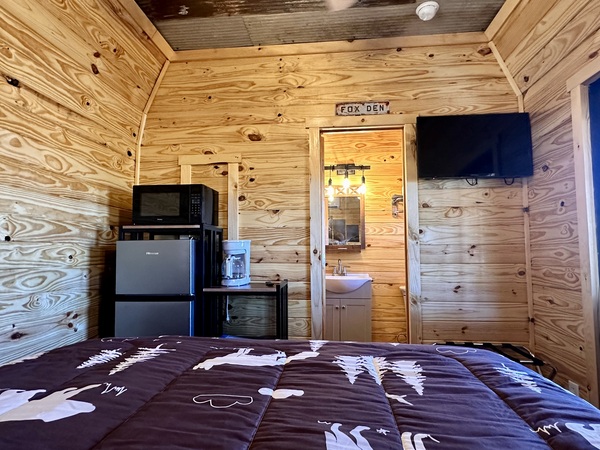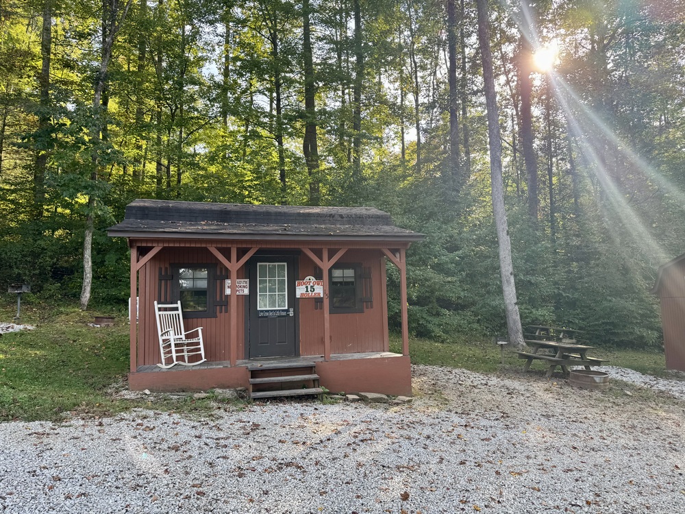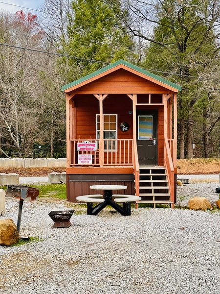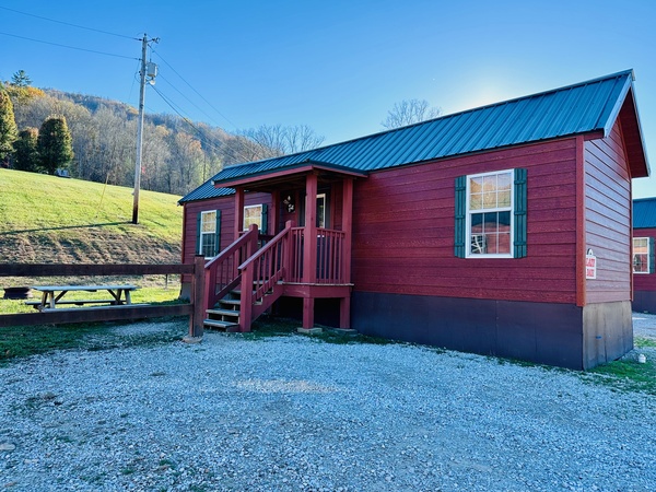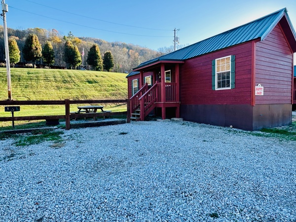 This cozy, one room cabin sleeps 4 people with 2 full and 1 twin bed. Cabin has heat/air, Bed linens only are provided and there is no indoor plumbing. These cabins are adjacent to our private entrance bath house. Free Wi-Fi available. This cabin is also pet friendly. There is a $20 plus tax nonrefundable pet fee per pet per night. Must be crated if left alone on the property. Maximum occupancy per site is limited to 4 people. Each site is limited to one vehicle and one trailer. Additional parking is available in our overflow lot by permit only at a rate of $10 per day.