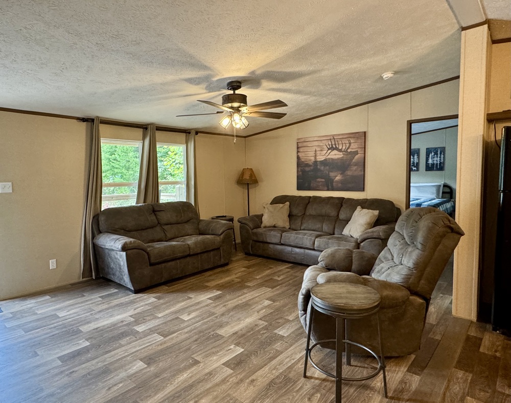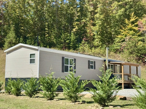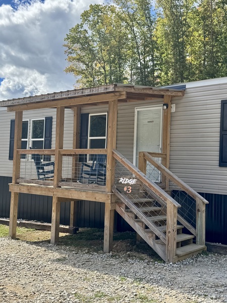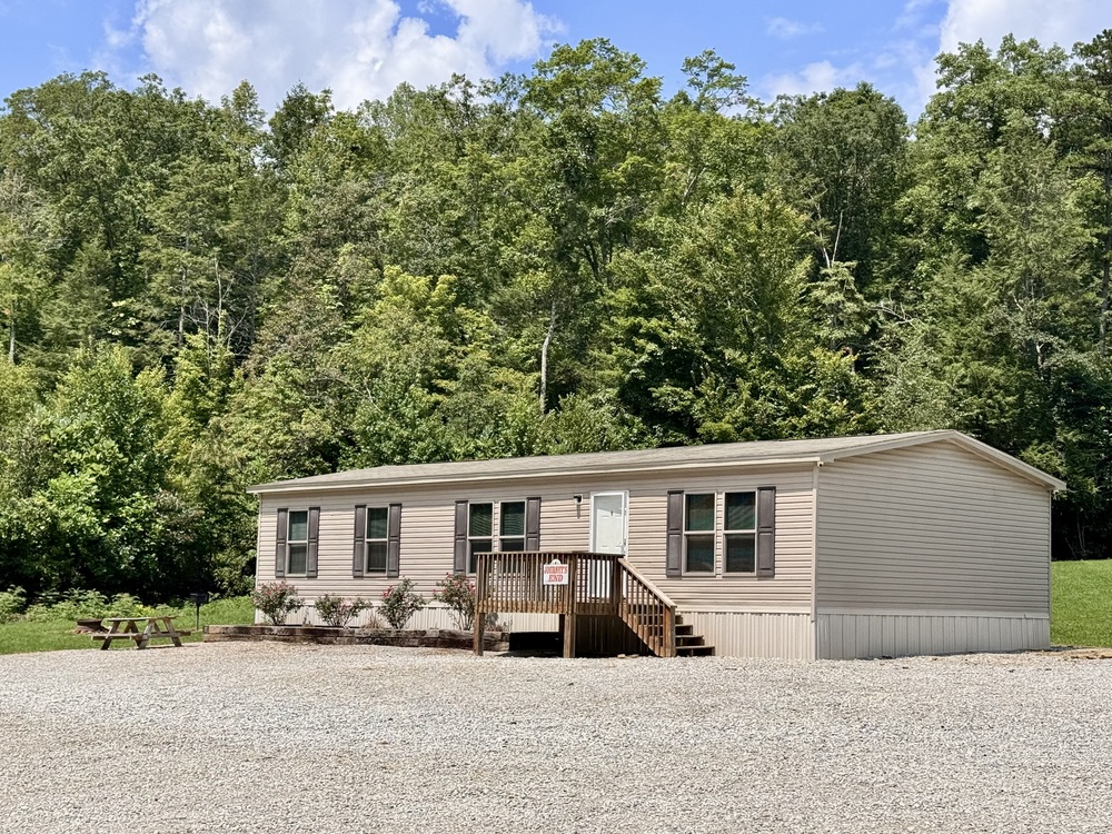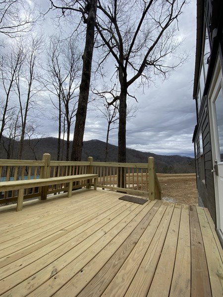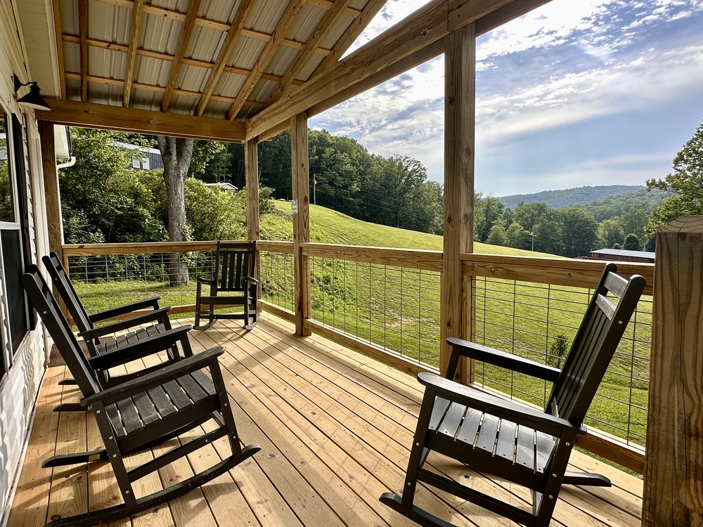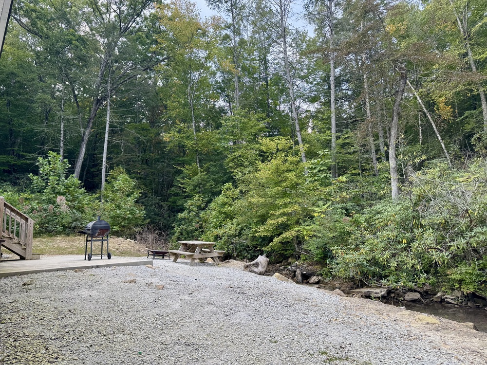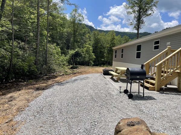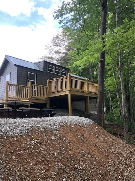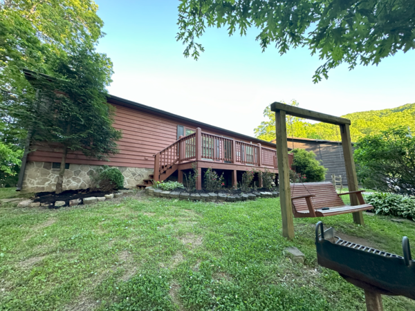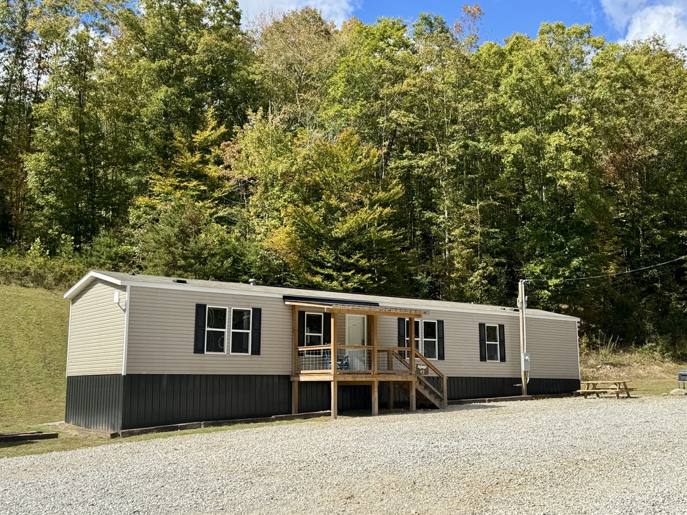 This is a four bedroom home that sits beside a beautiful rambling creek, off the road and very private. There is another home, Ridge 5, that is close and the two can accommodate large groups. This home has 2 full bathrooms, huge fully functional kitchen with all amenities, washer, dryer, microwave, full size refrigerator, large screen TV that is ROKU streaming capability, rear concrete patio, picnic table, fire ring and charcoal grill. The home sleeps 8 with 1 king size bed, and 3 queen beds. All linens are furnished. Free Wi-Fi available. Newly added covered front porch.