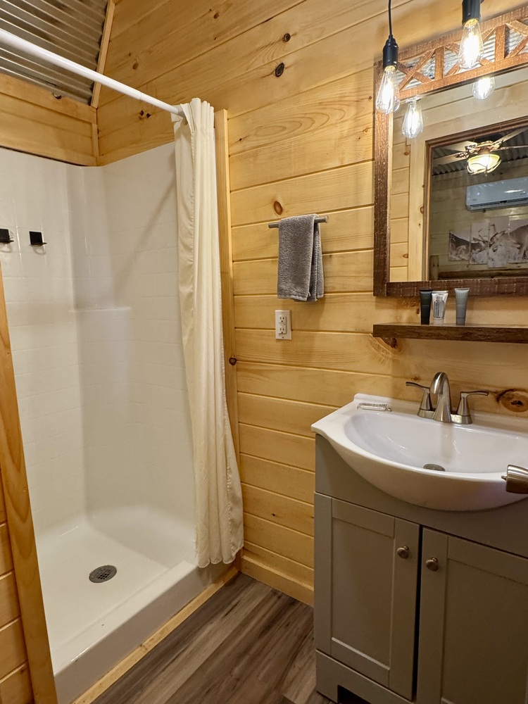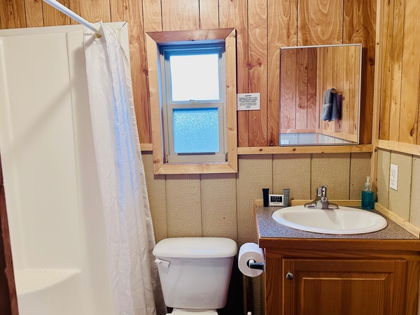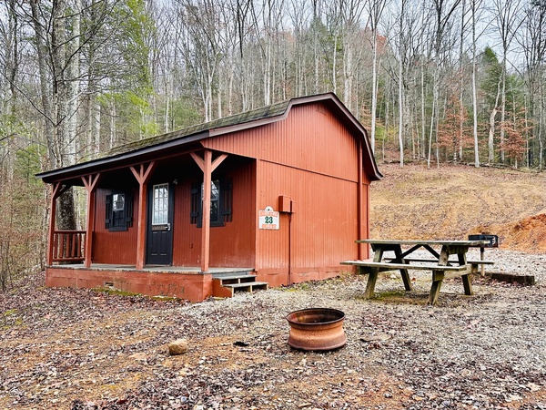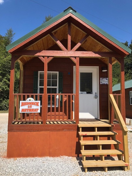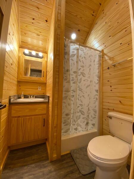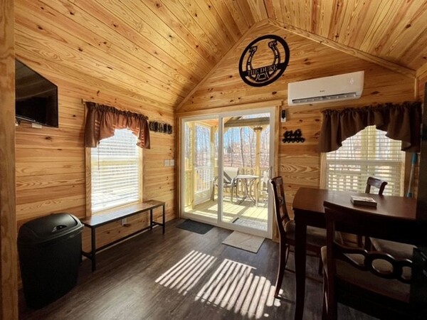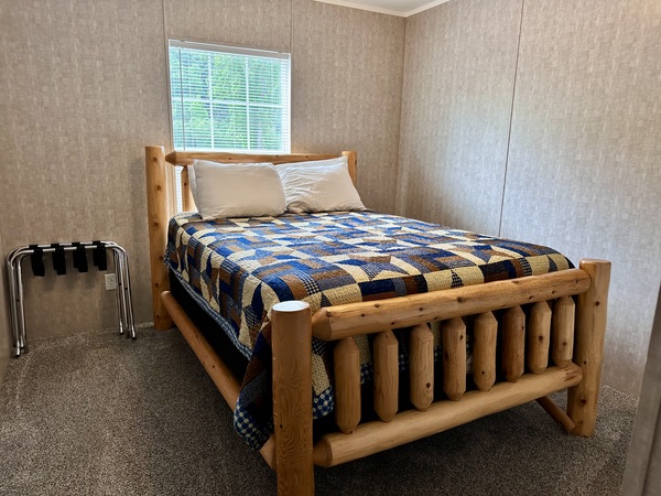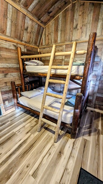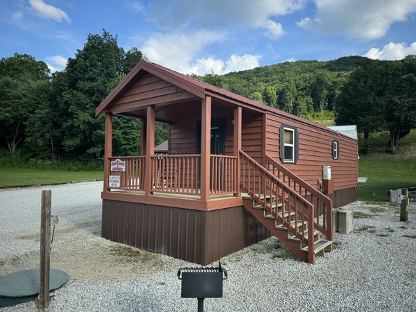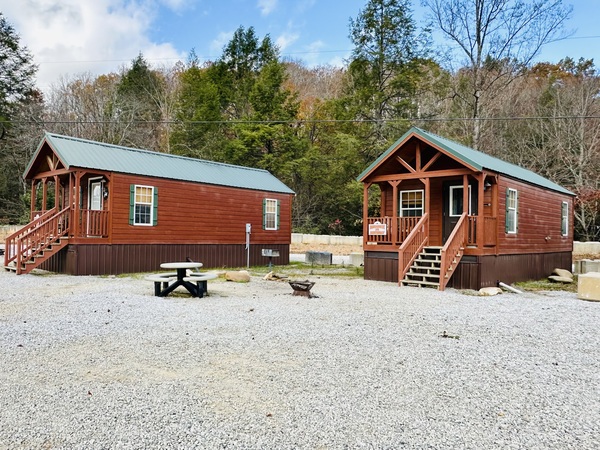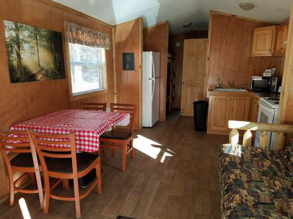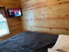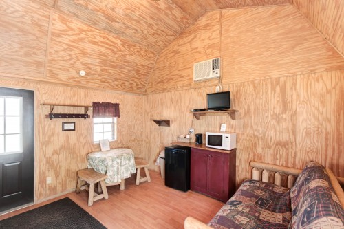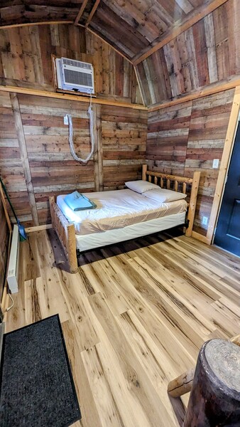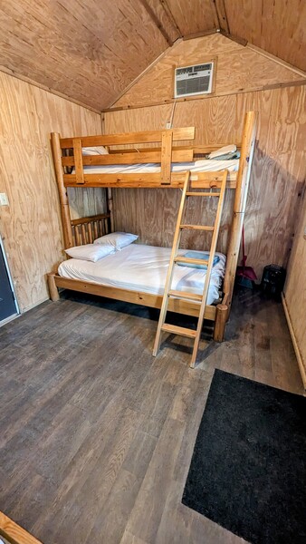 These cozy one room cabin sleeps 6 people with 2 full beds and 2 twin beds. Cabin has heat/air, Bed linens only are provided and there is no indoor plumbing. These cabins are adjacent to our private entrance bath house. Free Wi-Fi available. Maximum occupancy per site is limited to 6 people. Each site is limited to one vehicle and one trailer. Additional parking is available in our overflow lot by permit only at a rate of $10 per day.