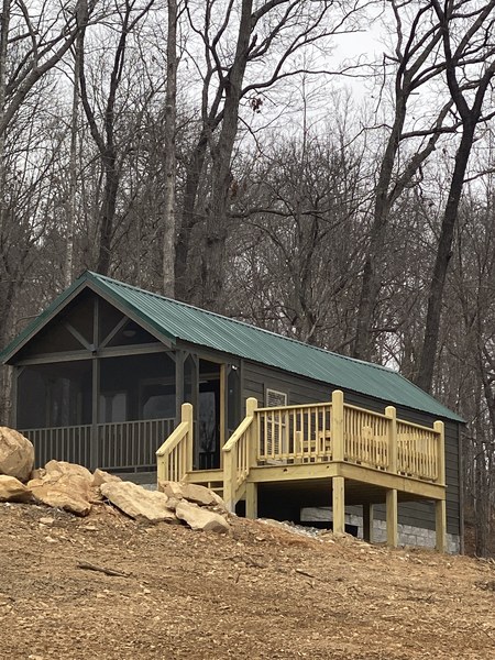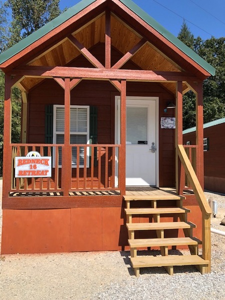 This cabin is across the street from the main campground. It has two separate bedrooms with queen size beds, full bathroom, fully equipped kitchen with stove/oven, full size refrigerator, table with four chairs, heat/air, ceiling fans in each room, high cathedral ceilings with tons of light, and a flat screen TV with ROKU capability, BBQ grill, picnic table, fire ring and a beautiful extensive deck. All linens are furnished. Parking for 2 vehicles. Does not have Wi-Fi.
