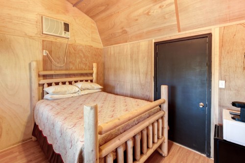 Cozy one room cabins that sleep 2 people with 1 queen bed, full bathroom, heat/air, microwave, mini fridge, coffee pot, and a flat screen TV with wifi capability. Linens are provided. Each site is limited to one vehicle and one trailer. Additional parking is available in our overflow lot by permit only.