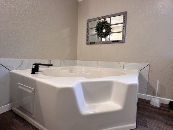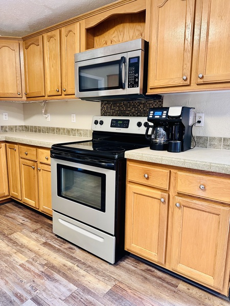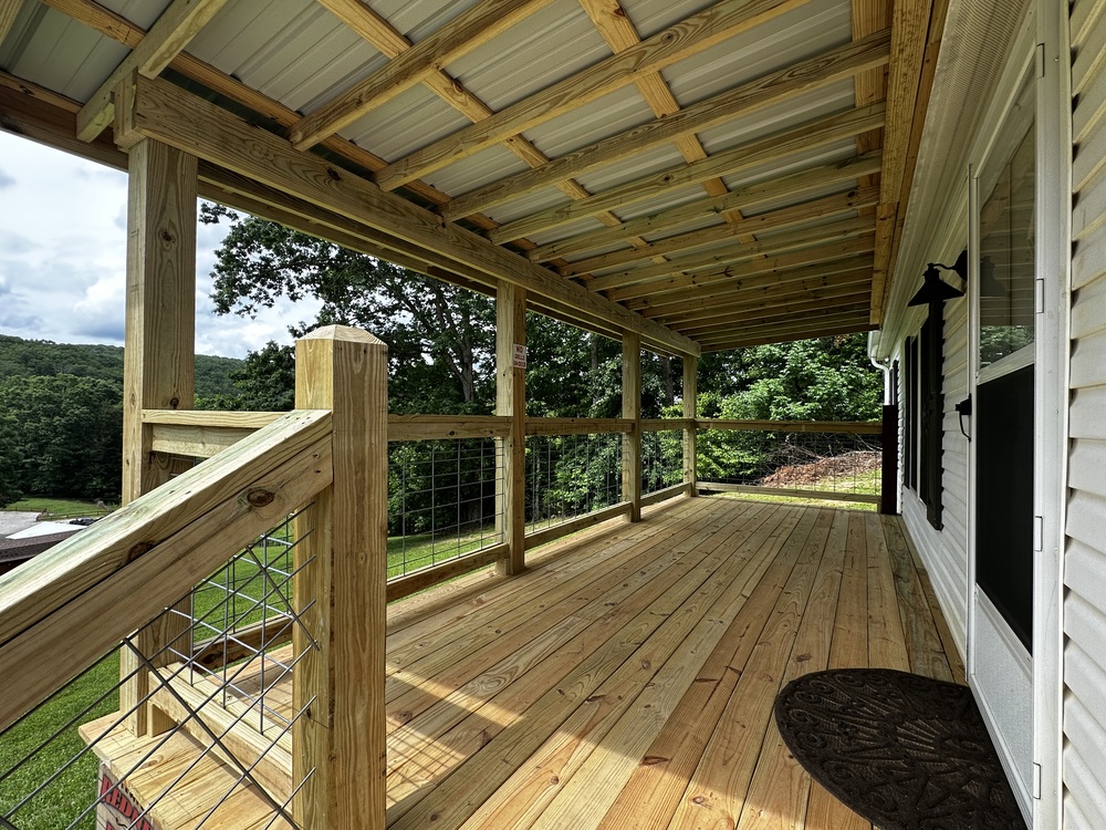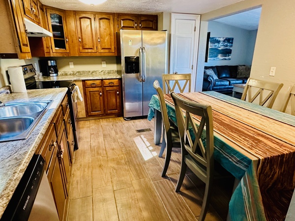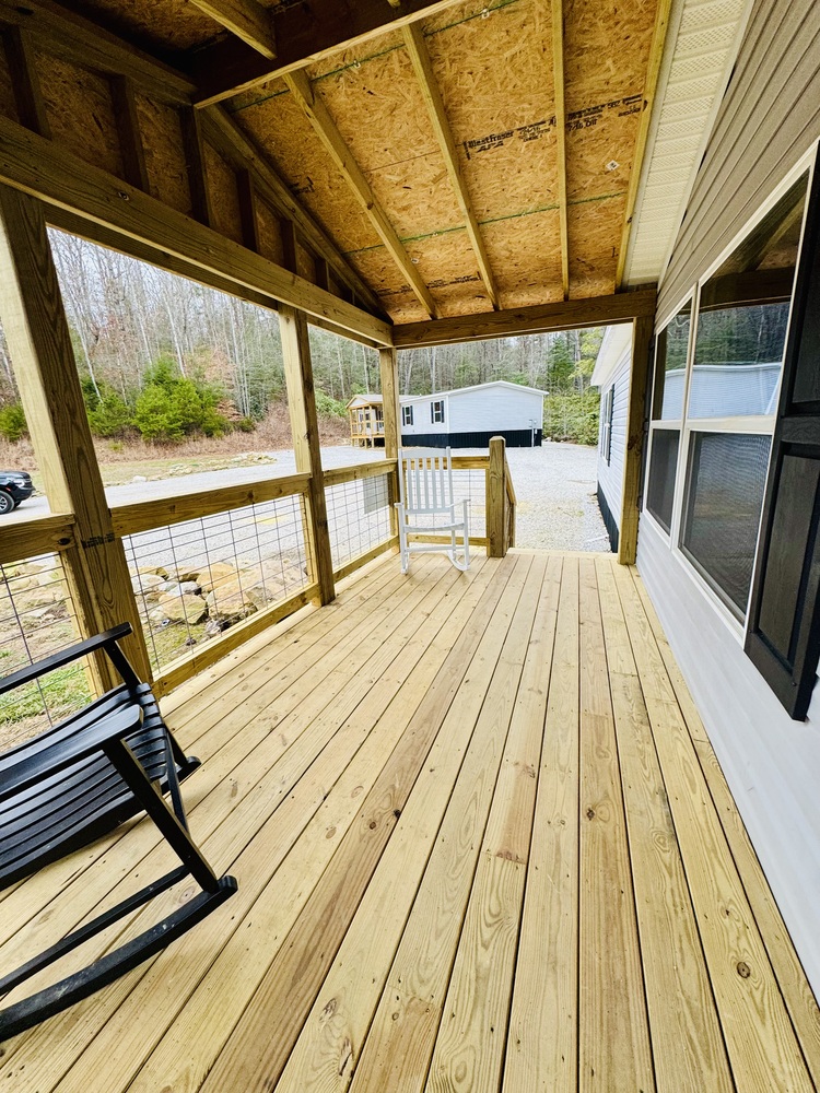 This is a newly remodeled 4 bedroom, 2 full bathroom house that comfortably sleeps 8. Featuring brand new king-size beds in each of the bedrooms. Enjoy splendid morning sunrises from the massive full length Covered deck & unwind in the evening in your private hot tub. The living room features plush leather sofas and a large flat screen TV that has Roku capability. The kitchen compliments include stainless appliances; refrigerator, stove, microwave and dishwasher. It also has a full size washer and dryer. All linens are furnished. Picnic table, fire ring and charcoal grill included.
