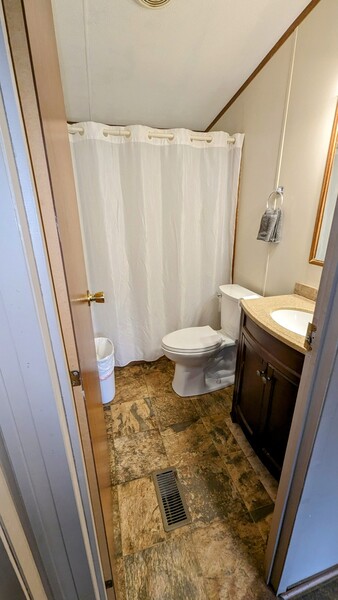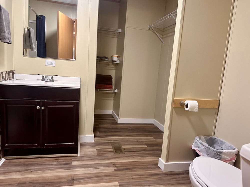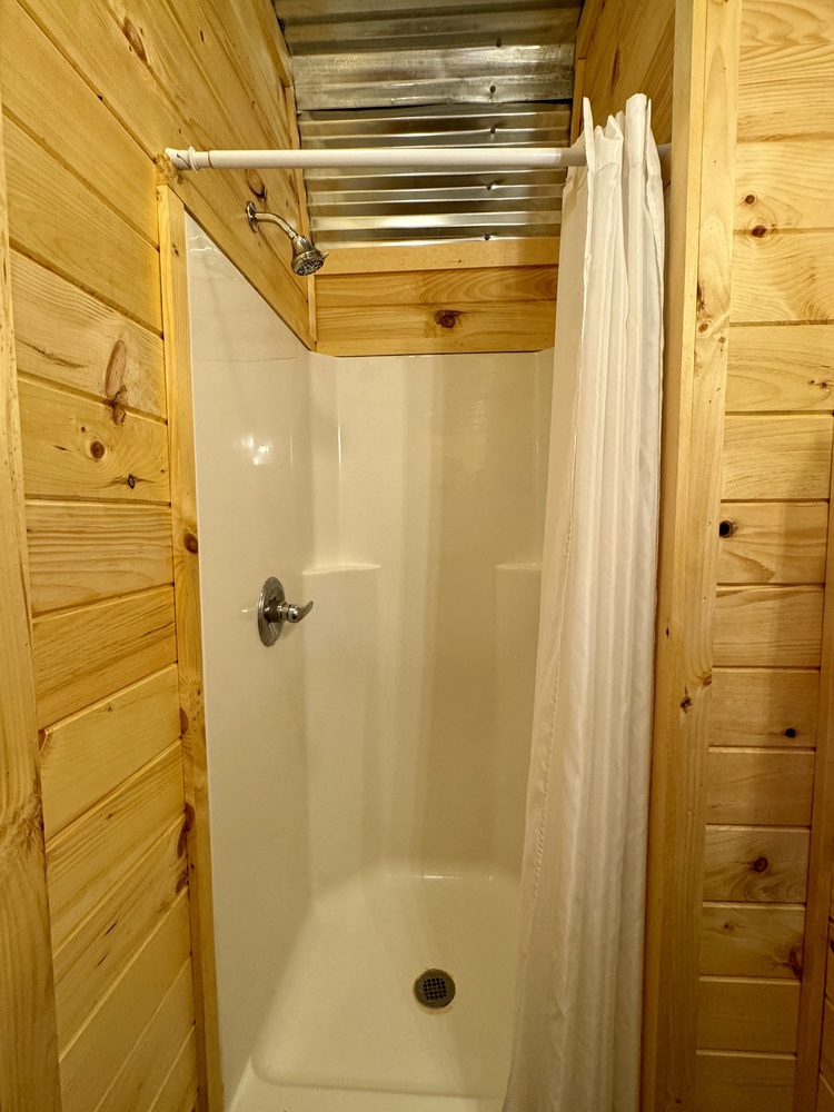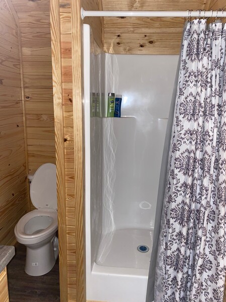 This cozy, one room cabin sleeps 4 people with 2 full and 1 twin bed. Cabin has heat/air, Bed linens only are provided and there is no indoor plumbing. These cabins are adjacent to our private entrance bath house. Free Wi-Fi available. Maximum occupancy per site is limited to 4 people. Each site is limited to one vehicle and one trailer. Additional parking is available in our overflow lot by permit only at a rate of $10 per day.